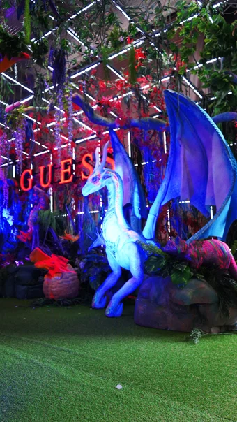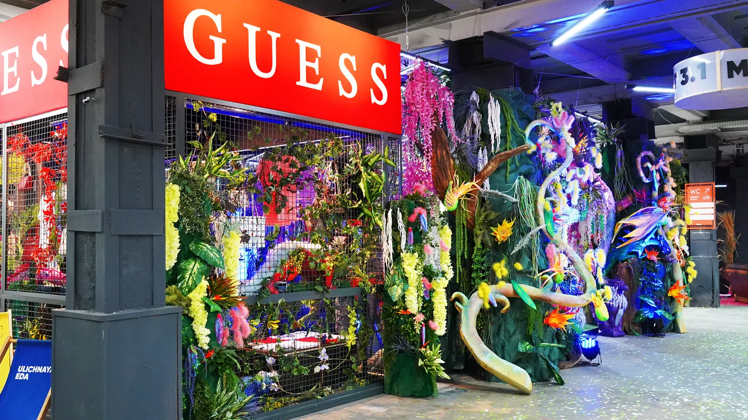 Море цветов, неона и ультрафиолета встречало посетителей стенда, который менялся снова и снова для каждой торговой марки.