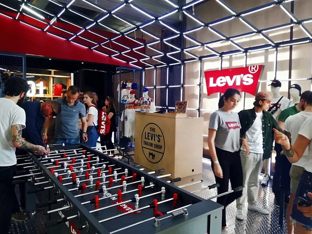 Задача: изготовление универсальной промозоны с pop-up store, многоразового использования для ТМ “Levis”, “SuperDry” и “Guess” (компании “Ultra Group”)