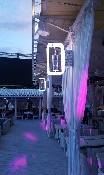 Для обоих клубов мы разработали и изготовили большое количество лайтбоксов, световых тейбл-тентов, брендинг лаунж-зон и VIP-комнат.