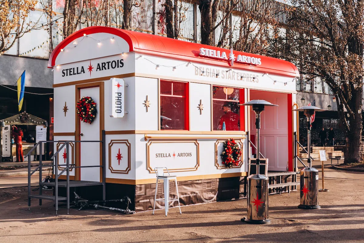 Учитывая сроки, нам было очевидно, что мы можем работать только с теми материалами и технологиями, которые позволят на 100% попасть в дедлайн. Поэтому основной упор мы сделали на декорировании вагончика. Все цветные элементы были выкрашены в камере автомобильными эмалями. А наши декораторы изготовили новогодние композиции, украсив ими внутреннее и внешнее пространство.